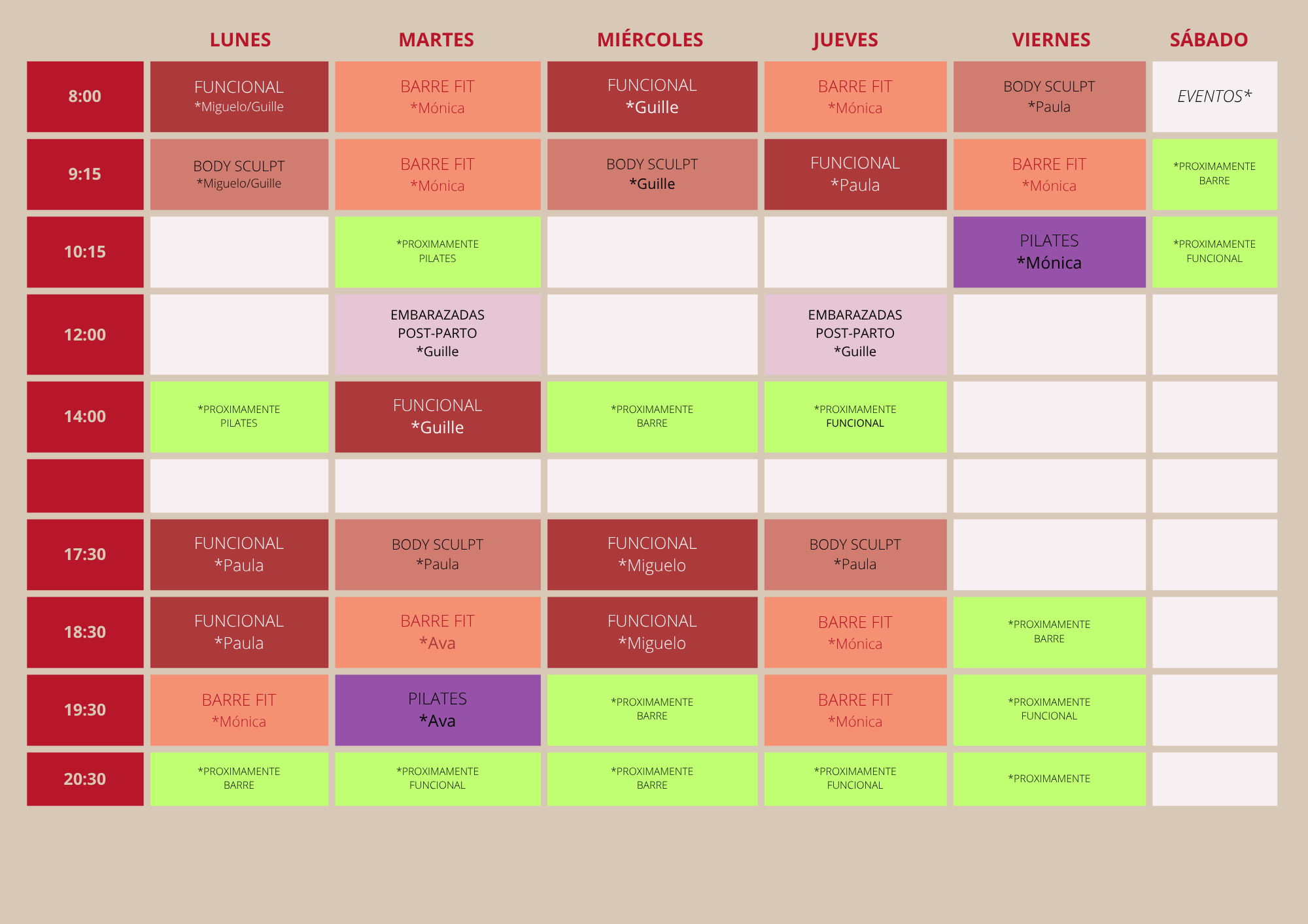 En VIBRA ofrecemos diferentes horarios de Barre Fit, Entrenamiento Funcional, Body Sculpt y Pilates, para que puedas entrenar según tu ritmo y disponibilidad.